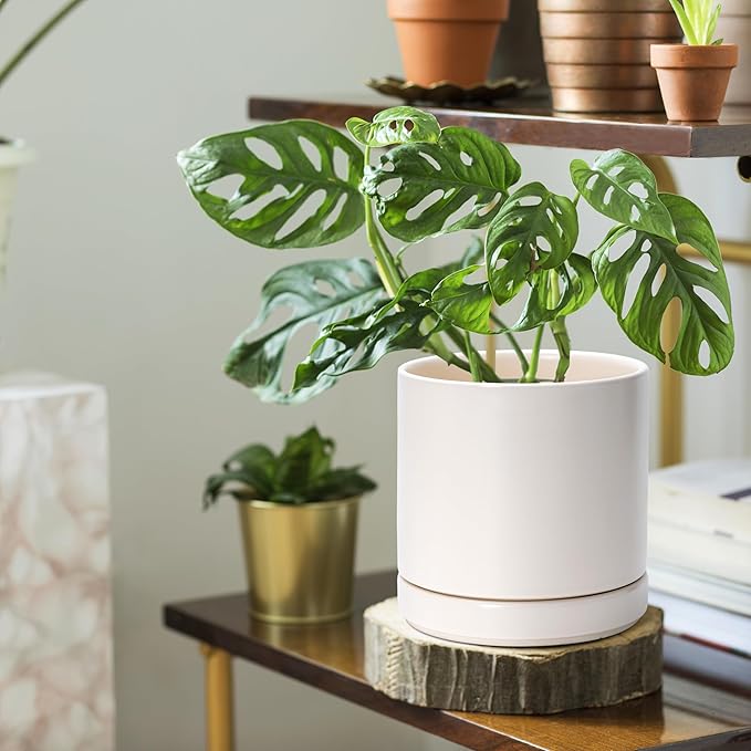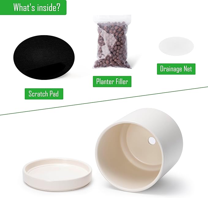D'vine Dev Set of 2 Plants Pots, 6.5 Inch Ceramic Planter Pot for Plants with Drainage Hole and Saucer, Oatmeal, 94-V-C-8