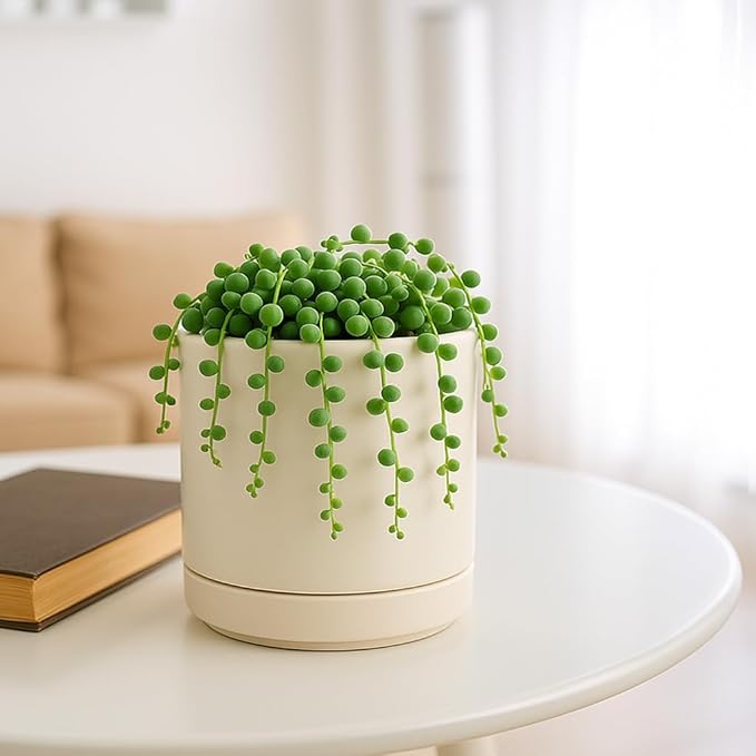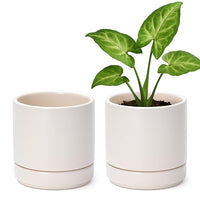 D'vine Dev Set of 2 Plants Pots, 4.7 Inch Ceramic Planter Pot for Plants with Drainage Hole and Saucer, Oatmeal, 94-V-B-8