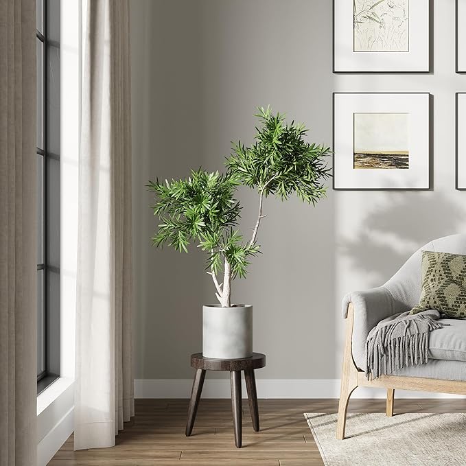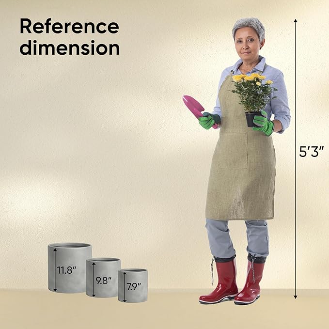 DTY Signature Mount Powell Fiberstone Planter - 8 Inch Extra Small Gray Cylindrical Mid-Century Modern Home Decor Indoor & Outdoor Plant Pot - Durable Planters for Indoor Plants, Outdoor Spaces