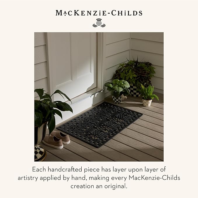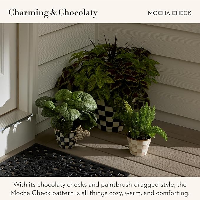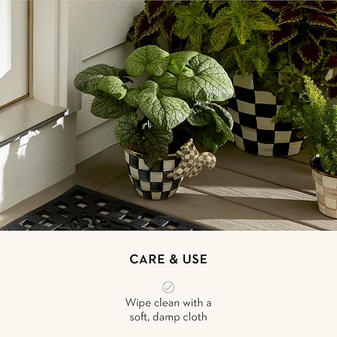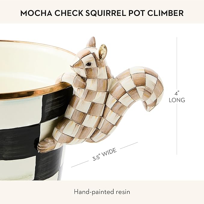 MACKENZIE-CHILDS Pot Climber, Outdoor Planter Hanging Decor, Brown-and-White Mocha Check Squirrel