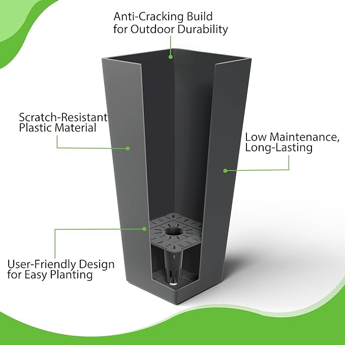 FENCY Set of 2 Tall Planters for Outdoor Plants, 24 Inch Large Tapered Pots with Drainage Trays, Weather-Resistant Plastic Plant Containers for Patio, Porch, Garden, Front Door Decor,Gray