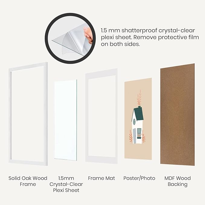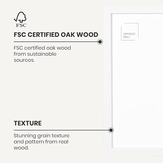 Opposite Wall - Set of 2-5x7 in - White Solid Oak Wood Picture Frames with Mat - Wall Hanging & Tabletop Photo Frame - Pictures Display 4x6 with Mat, 5x7 without - Office, Gallery & Home Decor