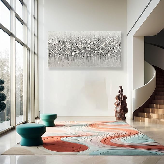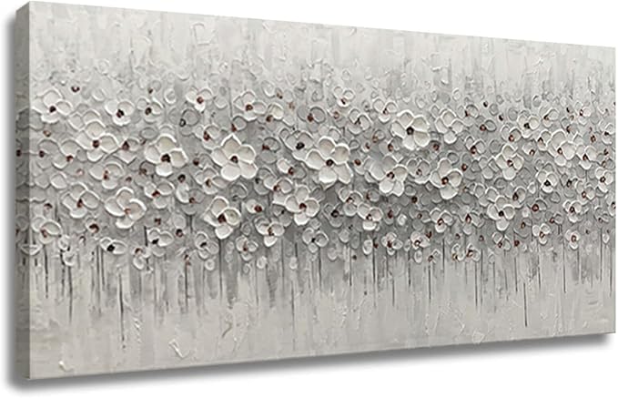 Large Canvas Wall Art for Living Room White Flowers Picture Hand-Painted Oil Painting Framed Artwork Modern Gallery Plant Decor Wall Decorations for Bedroom Bathroom Size 60x30 inch Ready to Hang