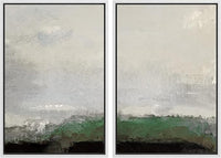 MUDECOR Framed Canvas Print Wall Art Set Watercolor Pastel Green Gray Landscape Abstract Shapes Illustrations Modern Art Decorative Contemporary for Living Room, Bedroom, Office - 16"x24"x2 White