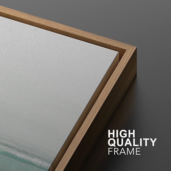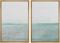 MUDECOR Framed Canvas Print Wall Art Set Teal Watercolor Paint Strokes Abstract Shapes Illustrations Modern Art Decorative Bohemian Calm/Zen for Living Room, Bedroom, Office - 24"x36"x2 Natural
