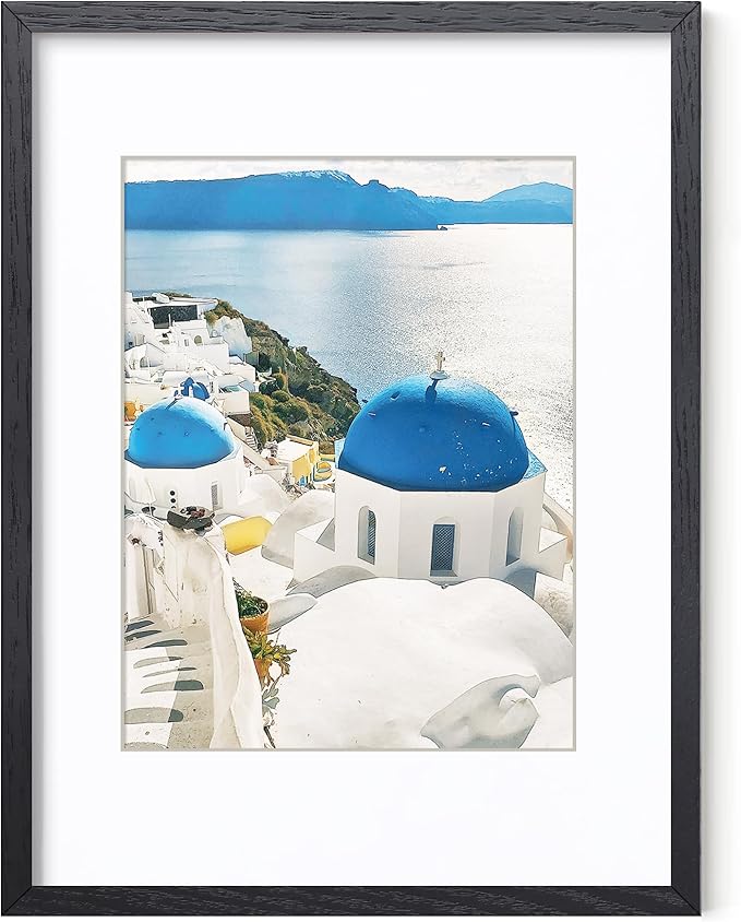 Axeman 12x16 Picture Frame with Mat for 8.5x11, Solid Oak Wood Frame w/Tempered Real Glass, Wooden Certificate Document Frame Horizontal and Vertical Formats for Wall with Wall Hook Included, Black