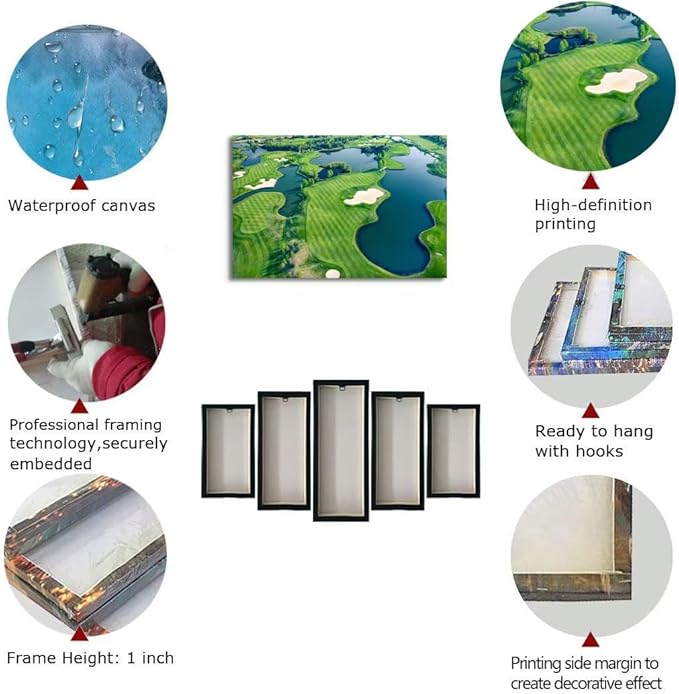 Golf Wall Art for Office Golf Course Picture Poster Canvas Prints Golf Course Picture Wall Decor for Living Room Bedroom Bathroom Home Decorations Framed Artwork Ready to Hang(12''H x 16''W)