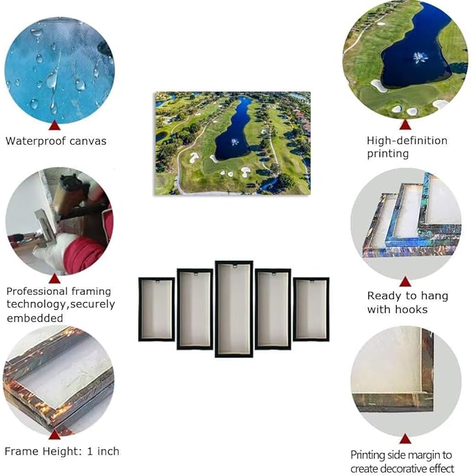 WESTON FL USA Golf Course Wall Art for Office Golf Course Picture Wall Decor for Living Room Bedroom Bathroom Home Decorations Canvas Prints Modern Artwork Framed Ready to Hang(12''H x 16''W)