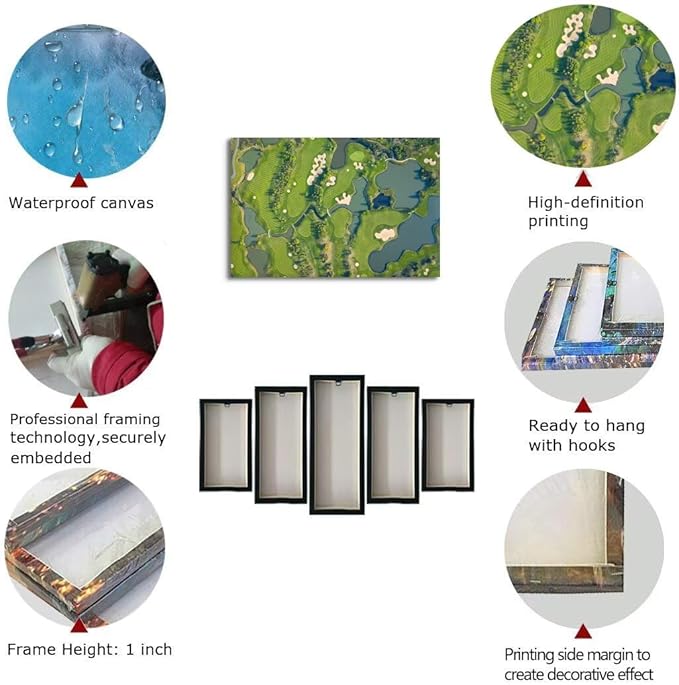 Golf Course Wall Art for Living Room Bedroom Bathroom Home Decorations Fairway Golf Course Picture Poster Canvas Prints Modern Framed Artwork Ready to Hang(12''H x 16''W)