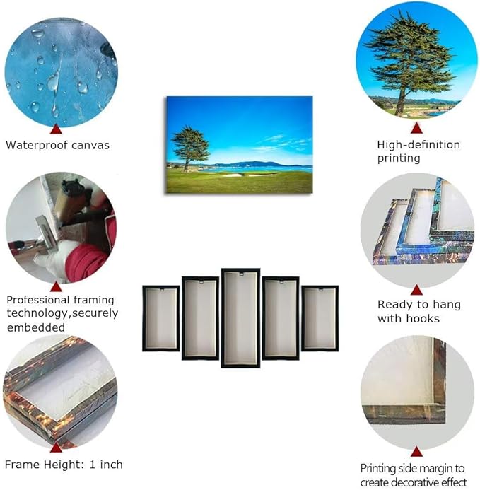Pebble Beach Golf Course 18th Hole Green Wall Art for Living Room Bedroom Bathroom Home Decorations Golf Course Picture Poster Canvas Prints Modern Framed Artwork Ready to Hang(24''H x 36''W)