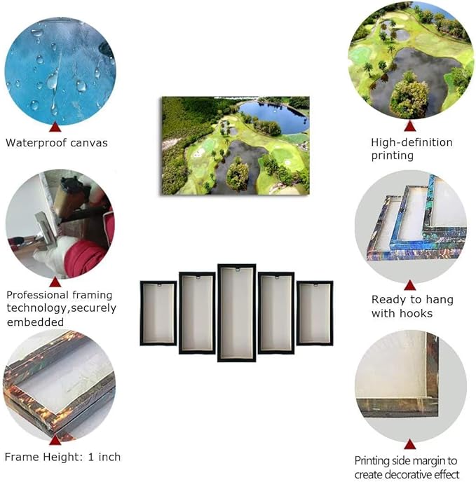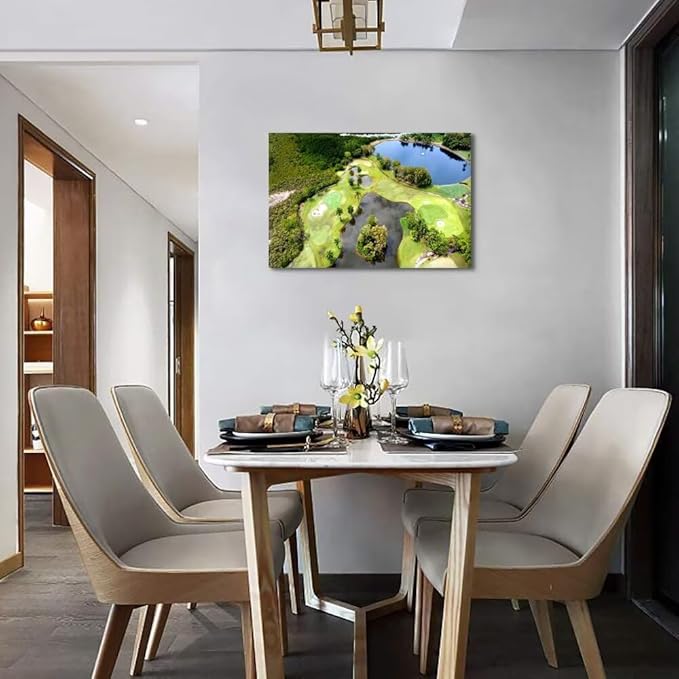 Golf Course Canvas Wall Art for Living Room Bedroom Bathroom Home Decorations Golf Course and Lake Picture Poster Prints Artwork Framed Ready to Hang(24''H x 36''W)