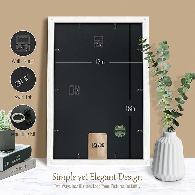 VCK 12x18 Poster Frame Set of 4 - White, Gallery-Quality Wood Picture Frames, 1.1-Inch Wide Border, Polished Plexiglass, Vertical or Horizontal Wall Display for Photo/Art/Prints, White
