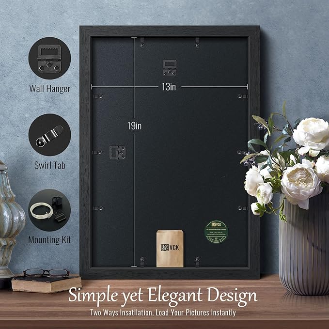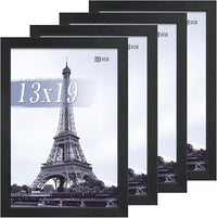 VCK 13x19 Picture Frame Set of 4 - Black, Gallery-Quality Wood Poster Frames, 1.1-Inch Wide Border, Polished Plexiglass, Vertical or Horizontal Wall Display for Photo/Art/Prints, Black