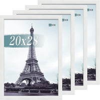 VCK 20x28 Picture Frame Set of 4 - White, Gallery-Quality Wood Poster Frames, 1.1-Inch Wide Border, Polished Plexiglass, Vertical or Horizontal Wall Display for Photo/Art/Prints, White