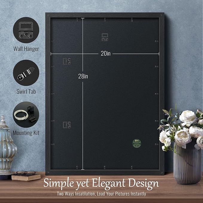 VCK 20x28 Picture Frame Set of 4 - Black, Gallery-Quality Wood Poster Frames, 1.1-Inch Wide Border, Polished Plexiglass, Vertical or Horizontal Wall Display for Photo/Art/Prints, Black