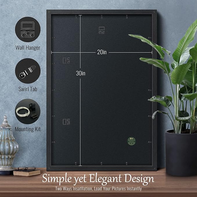 VCK 20x30 Poster Frame Set of 4 - Black, Gallery-Quality Wood Picture Frames, 1.1-Inch Wide Border, Polished Plexiglass, Vertical or Horizontal Wall Display for Photo/Art/Prints, Black