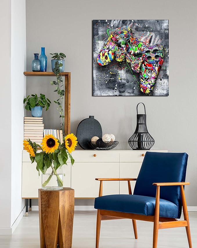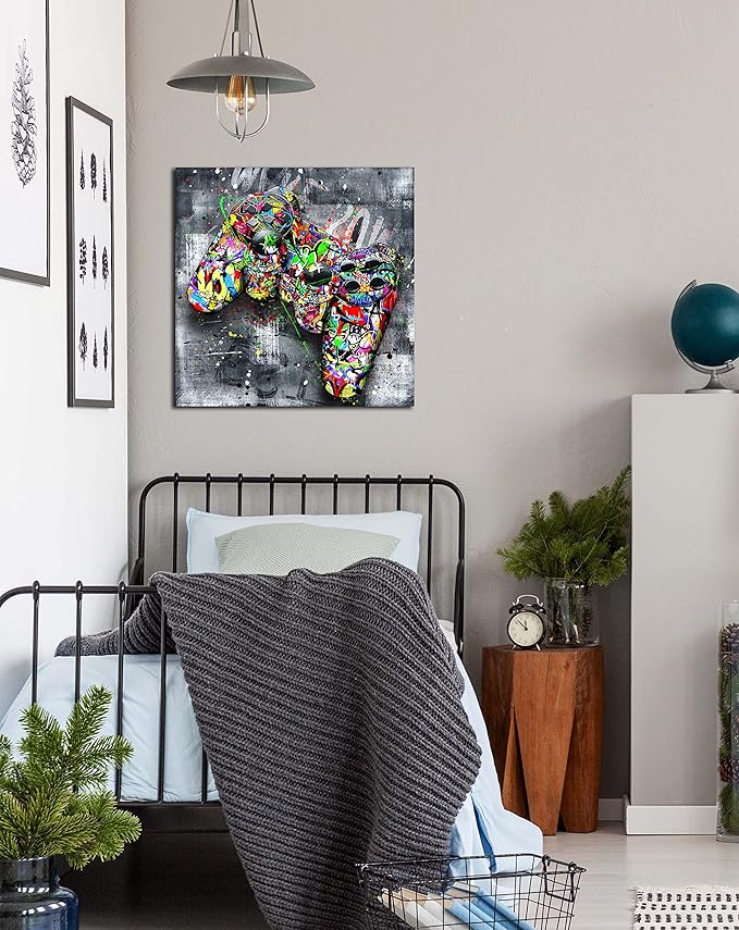 JKWALL77 Graffiti Gaming Wall-Art For Living Room Large Size - Room Decor For Teen Boys - Abstract Canvas Wall Art Ready To Hang Size 30" x 30"