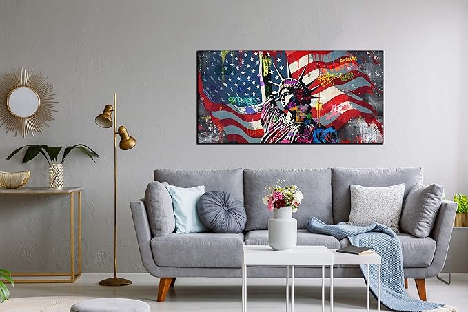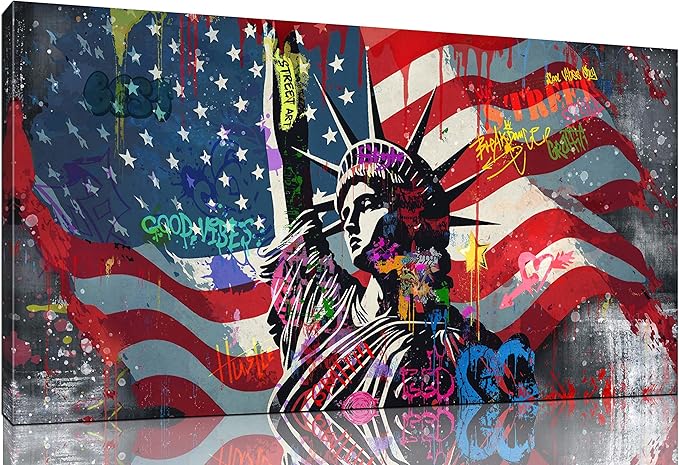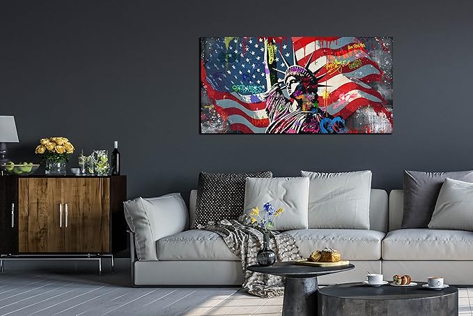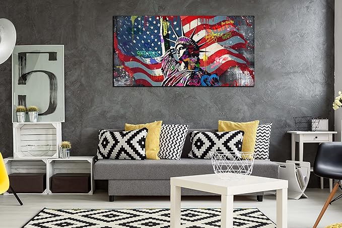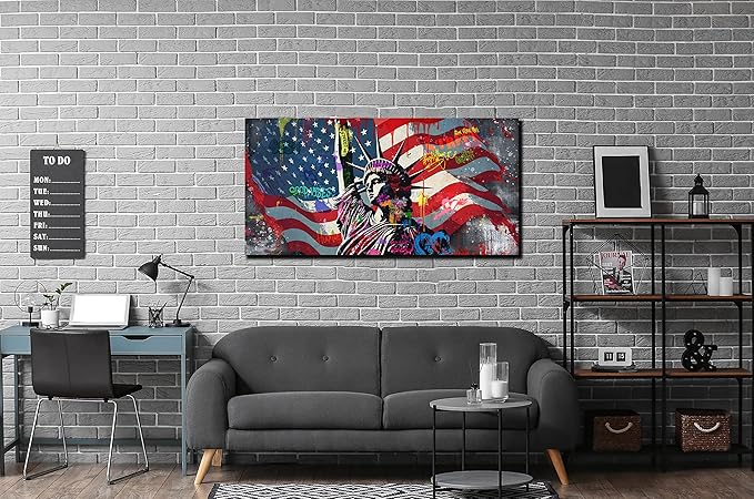 JKWALL77 American Flag Wall-Decor - Banksy Graffiti Canvas Wall Art - Office Pictures For Wall Ready To Hang Size 40" x 20"