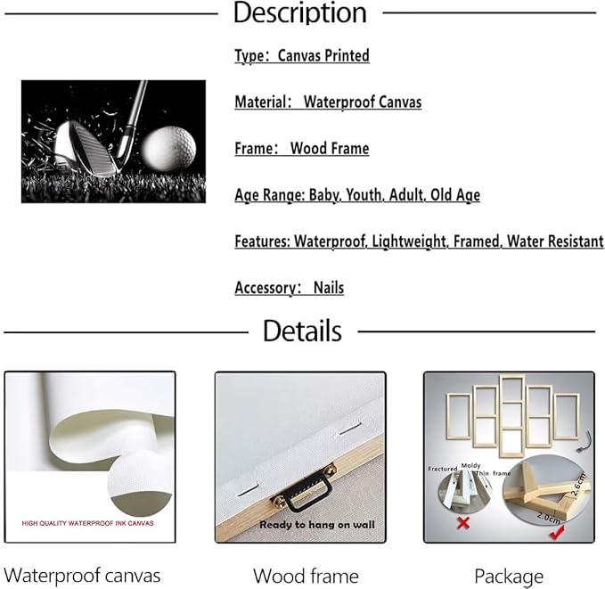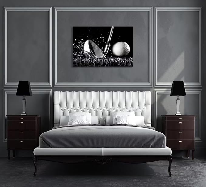 Golf Poster Wall Art Picture Golf Ball Sport Canvas Prints Wall Decor for Gym Living Room Decorations Framed Artwork Ready to Hang(12''H x 16''W)