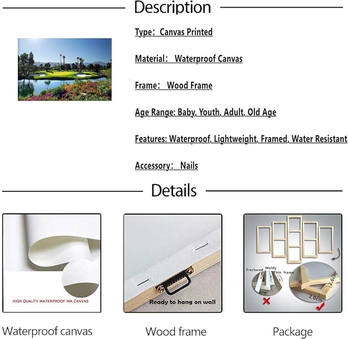 chenchenArt Indian Wells Golf Course Wall Art Picture Golf Course Poster Wall Decor for Living Room Bedroom Home Decorations Golf Artwork Canvas Prints Framed Ready to Hang(12''H x 16''W)