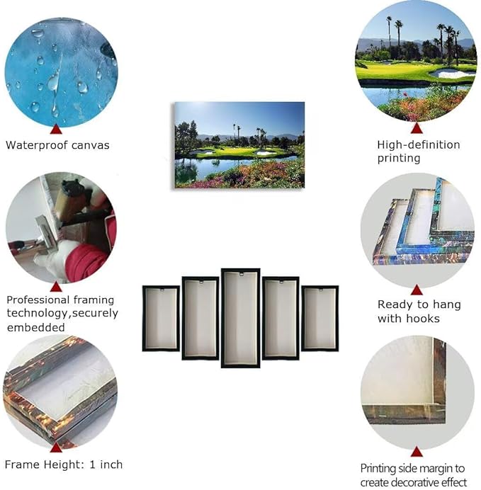 chenchenArt Indian Wells Golf Course Wall Art Picture Golf Course Poster Wall Decor for Living Room Bedroom Home Decorations Golf Artwork Canvas Prints Framed Ready to Hang(18''H x 24''W)