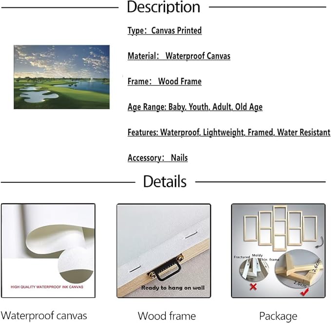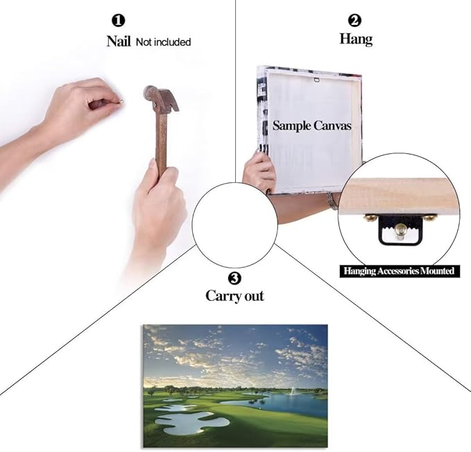 Blue Monster Golf Course Canvas Wall Art for Living Room Bedroom Bathroom Home Decorations Paintings Golf Course Picture Poster Framed Artwork Ready to Hang(28''H x 44''W)