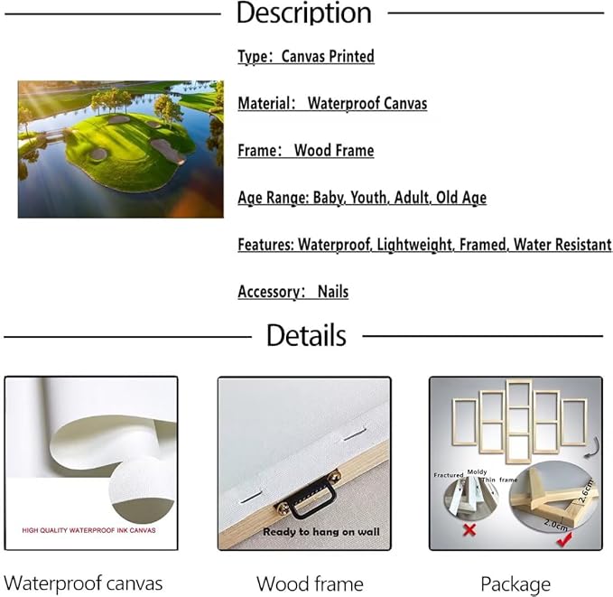 Island Golg Hole in Arizona Wall Art for Living Room Bedroom Bathroom Home Decoraitons Golf Course Picture Poster Framed Artwork Canvas Prints Ready to Hang(28''H x 44''W)