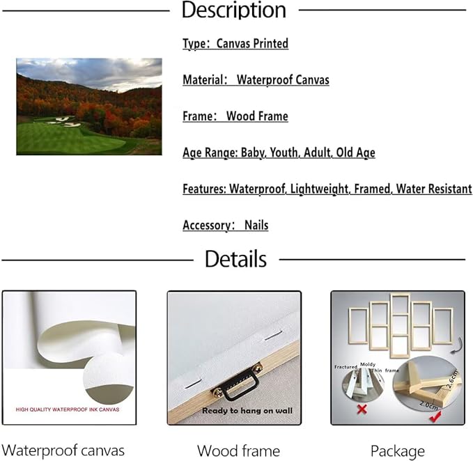 chenchenArt Sequoyah North Carolina Mountains Golf Course Wall Art for Living Room Bedroom Bathroom Home Decorations Golf Art Canvas Prints Framed Ready to Hang(12''H x 16''W)
