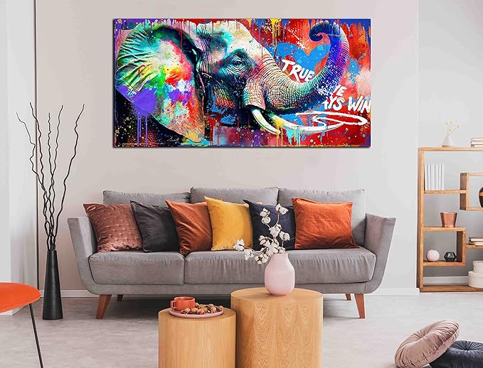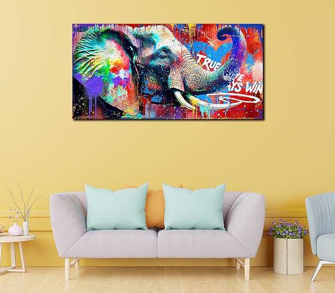 Graffiti Elephant Canvas Wall-Art - Wall Art Bedroom Decor for Teen Boys - Funny Animal Wall Art Ready to Hang Size 59" x 29"