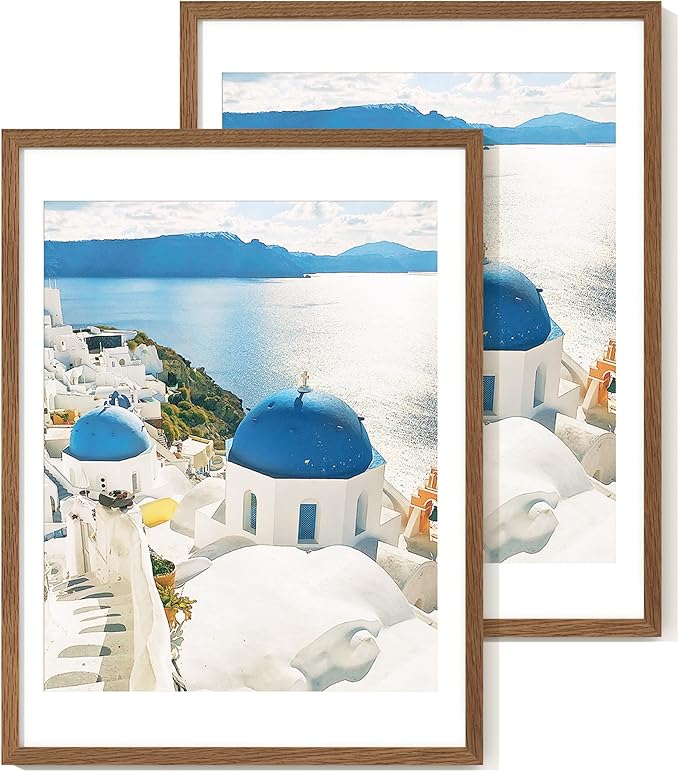 Axeman 18x24 Poster Frame with Mat for 16x20, Solid Oak Wood Picture Frame with Tempered Glass, Wooden 18''x24'' Minimalist Photo Frame with Free Wall Hooks for Art Photo and Prints, Set of 2, Walnut