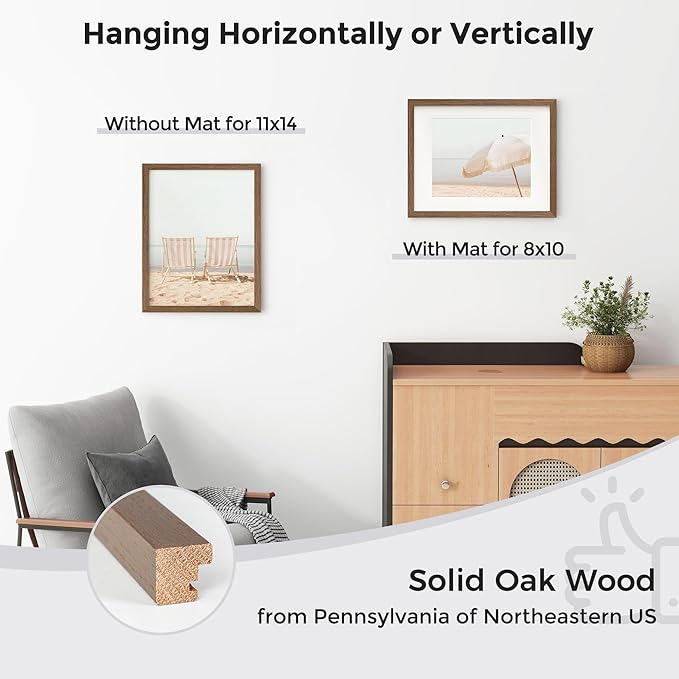 Axeman 11x14 Picture Frame with Mat for 8x10, Solid Oak Wood Picture Frames with Tempered Glass, Natural Wooden 11x14 inch Photo Frame for Wall with Wall Hook Included, Set of 2, Walnut