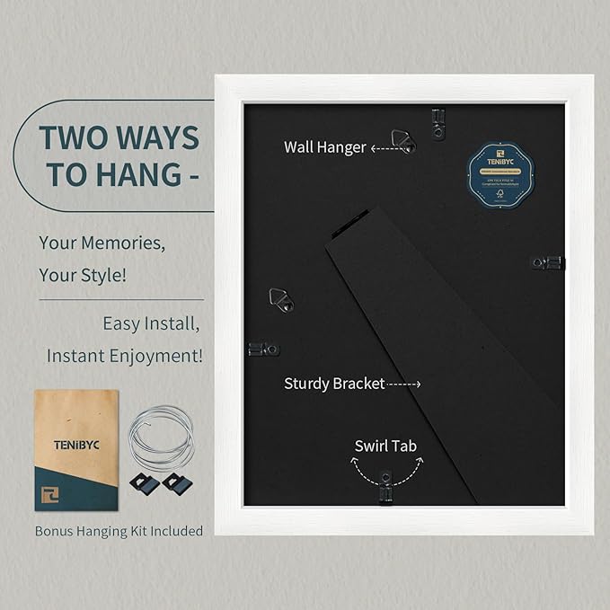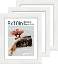 8x10 Picture Frame Set - 3 Pack, Textured White Solid Wood, HD Tempered Glass, Gallery Photo Frame, Table or Wall Display