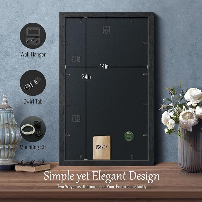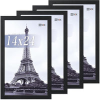 VCK 14x24 Poster Frame Set of 4 - Black, Gallery-Quality Wood Picture Frames, 1.1-Inch Wide Border, Polished Plexiglass, Vertical or Horizontal Wall Display for Photo/Art/Prints, Black