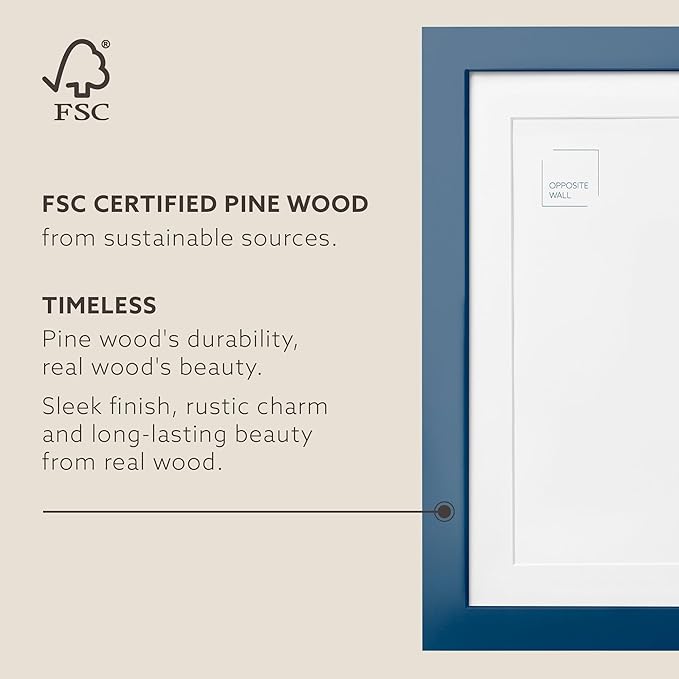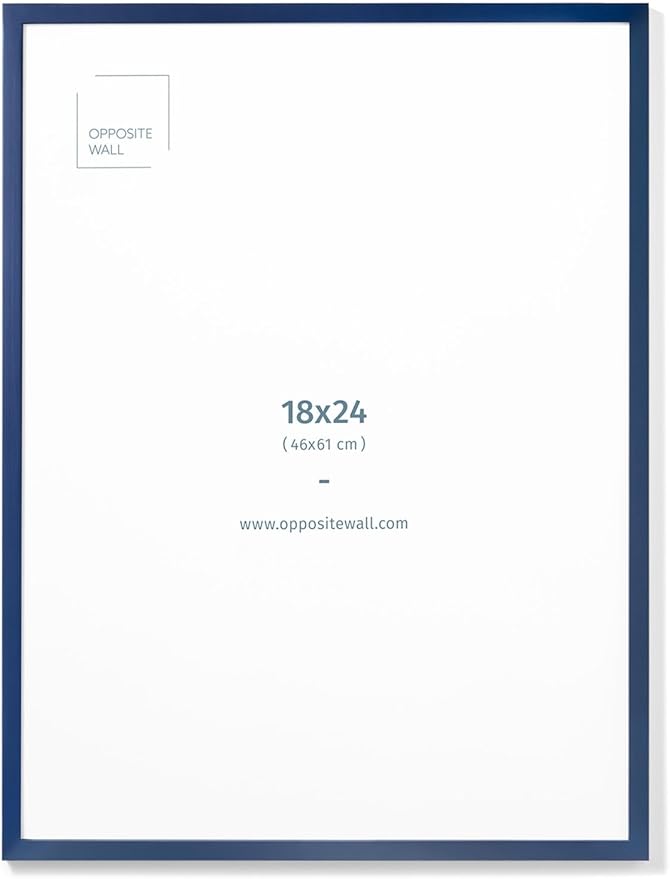 Opposite Wall - 18x24 in - Real Wood Blue Picture Frame - Lightweight, Versatile & Shatterproof - Wall Hanging Poster or Photo Frame - Wall Decor for Office, Gallery & Home