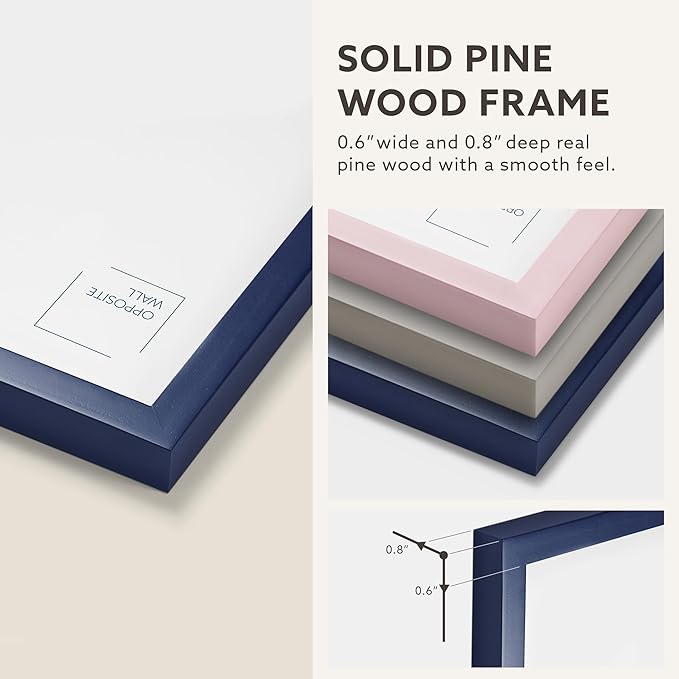Opposite Wall - 12x16 in - Real Wood Blue Picture Frame - Lightweight, Versatile & Shatterproof - Wall Hanging Poster or Photo Frame - Wall Decor for Office, Gallery & Home