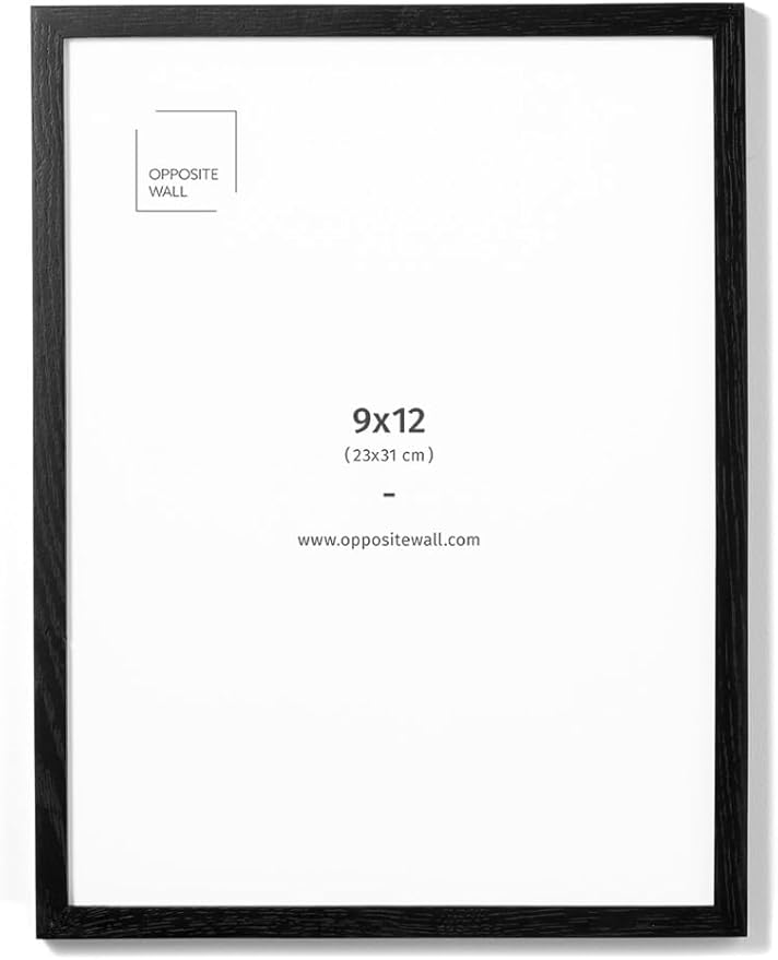 Opposite Wall - 9x12 in - Black Oak Wood Picture Frame - Lightweight, Versatile & Shatterproof - Wall Hanging Poster or Photo Frame - Wall Decor for Office, Gallery & Home