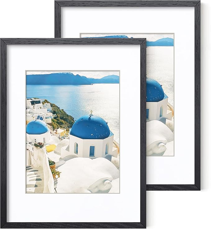 Axeman 12x16 Picture Frame with Mat for 8.5x11, Solid Oak Wood Frame with Tempered Real Glass, Wooden Certificate Document Frame for Wall with Wall Hook Included, Set of 2, Black