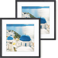 Axeman 16x16 Picture Frame with Mat for 12x12, Solid Oak Wood Square Picture Frame with Tempered Glass, Wooden Square Photo Frame 16''x16'' for Art Photo and Prints, Set of 2, Black