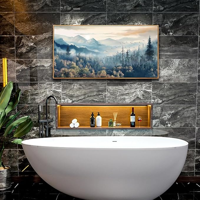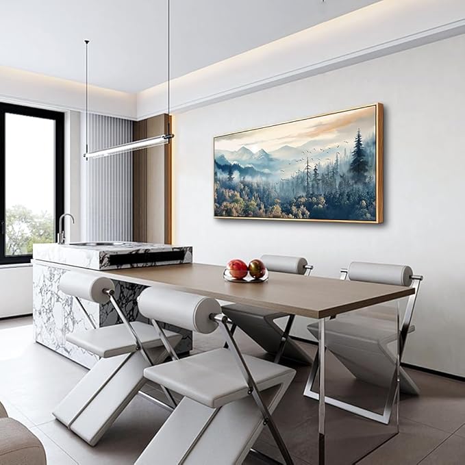 MHARTK66 Wood Framed Canvas Wall Art For Living Room Wall Decorations For Bedroom Office Wall Decor Prints Foggy Forest Trees Landscape Wall Painting Wall Pictures Ready To Hang Room Home Art Decor