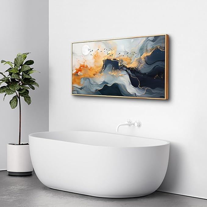 MHARTK66 Boho Wall Decor Living Room Wood Framed Canvas Wall Art For Bedroom Office Wall Decorations Minimalist Abstract Ink Wall Paintings Framed Prints Wall Pictures Artwork Hotel Room Home Decor