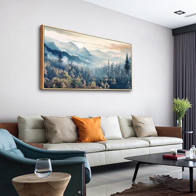MHARTK66 Large Wall Art - Foggy Forest Trees Landscape Canvas Prints, Framed, Ready To Hang For Living Room, Bedroom, Office Decor