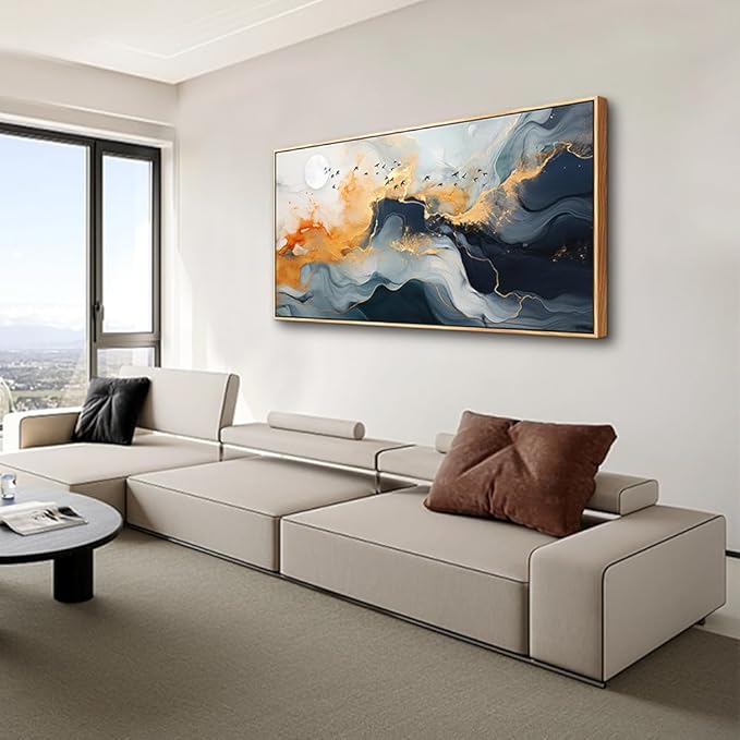 MHARTK66 Canvas Wall Art For Living Room Wood Framed Boho Wall Decor Bedroom Office Large Wall Decorations Minimalist Abstract Ink Wall Painting Framed Prints Pictures Artwork Hotel Room Home Decor
