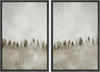 MUDECOR Framed Canvas Print Wall Art Set Misty Pines Serene Forest Landscape Illustrations Modern Art Decorative Bohemian Calm/Zen for Living Room, Bedroom, Office - 24"x36"x2 Black