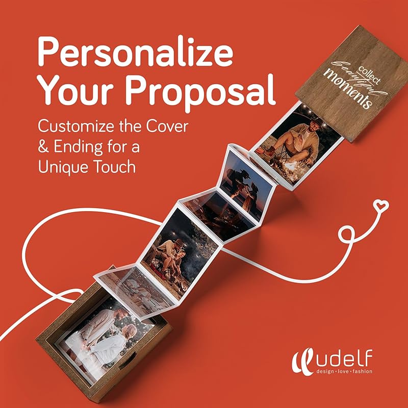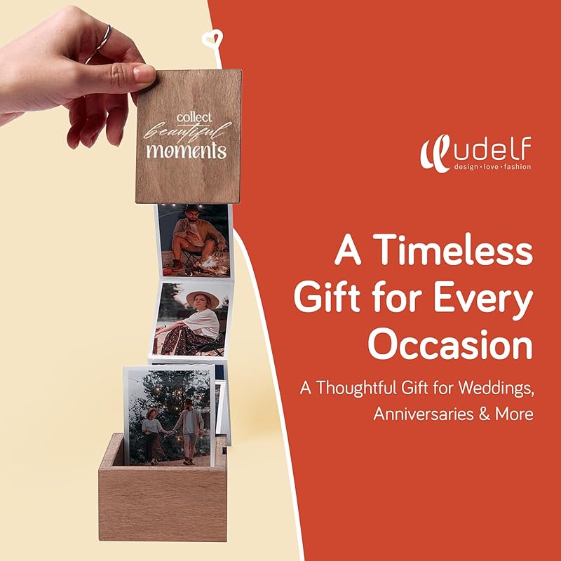 Personalized Wooden Photo Box Gift with Accordion Picture Pull Out | Custom Photo Album Box | Personalized Photo Box Gift for Any Occasion, Picture Box Gift I 14 Photo Prints, 3"x2" (Moments-Vertical)