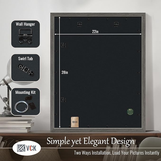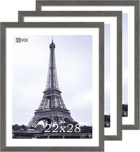 VCK 22x28 Frame Set of 3, Gray Solid Wood Poster Picture Frame, Exclusive Wood Grain, Wall Gallery Frame