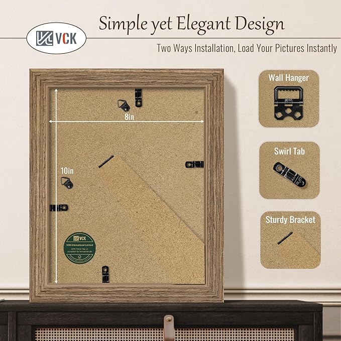 VCK 8x10 Picture Frame 3 Pack - Brown Walnut, Natural Textured Solid Wood Frame, Wall Gallery Frame
