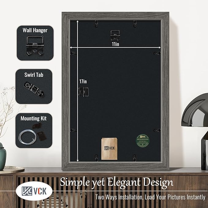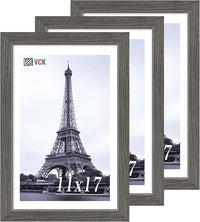 VCK 11x17 Picture Frame 3 Pack, Gray Solid Wood Poster Picture Frame, Exclusive Wood Grain, Wall Mounting Hanging