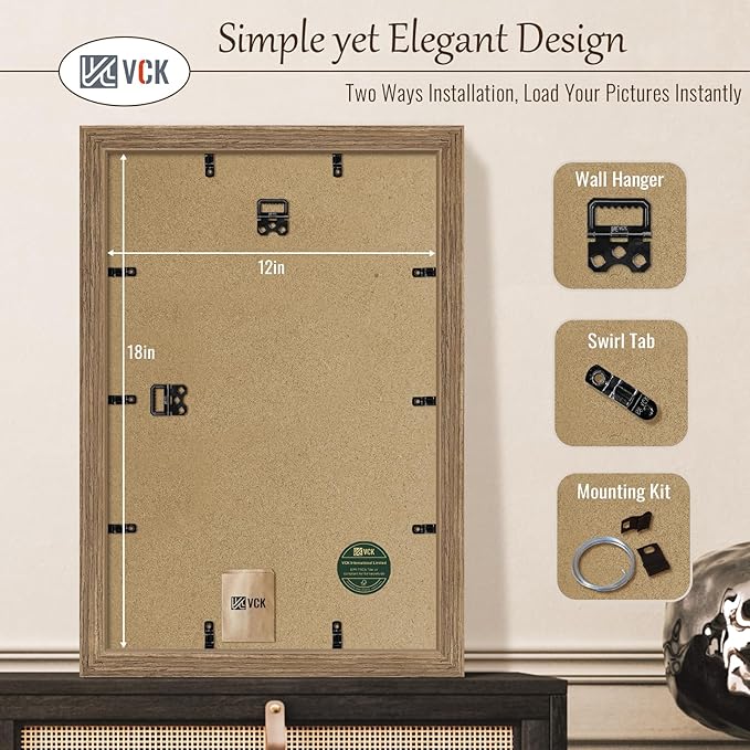 VCK 12x18 Frame 3 Pack - Brown Walnut, Natural Textured Solid Wood Poster Picture Frame, Wall Gallery Frame