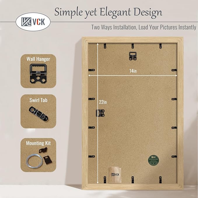 Effortless Installation: Our poster picture frame not only comes with hanging hardware for both horizontal and vertical display, but also features a unique spin-lock design. Allows for easy loading of 14x22 or 22x14 photos, prints, diplomas, puzzles, or art