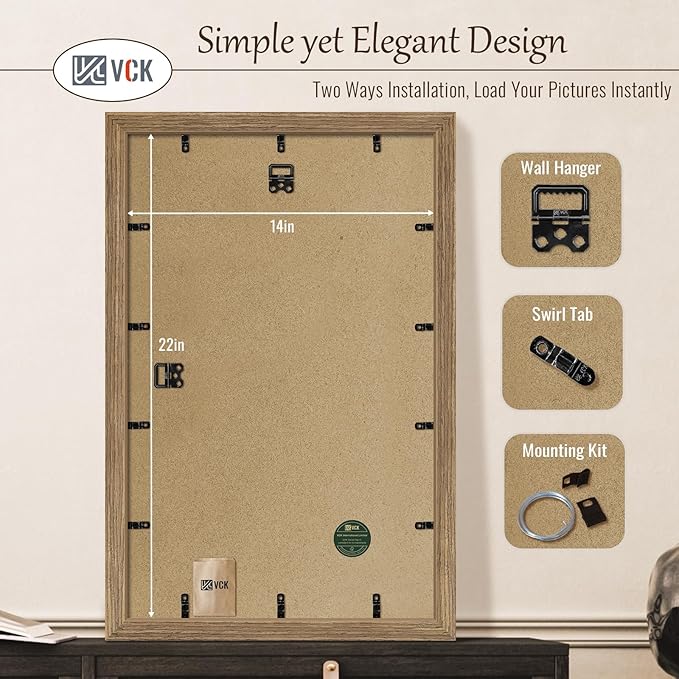VCK 14x22 Picture Frame 3 Pack - Brown Walnut, Natural Textured Solid Wood Frame, Wall Gallery Frame
